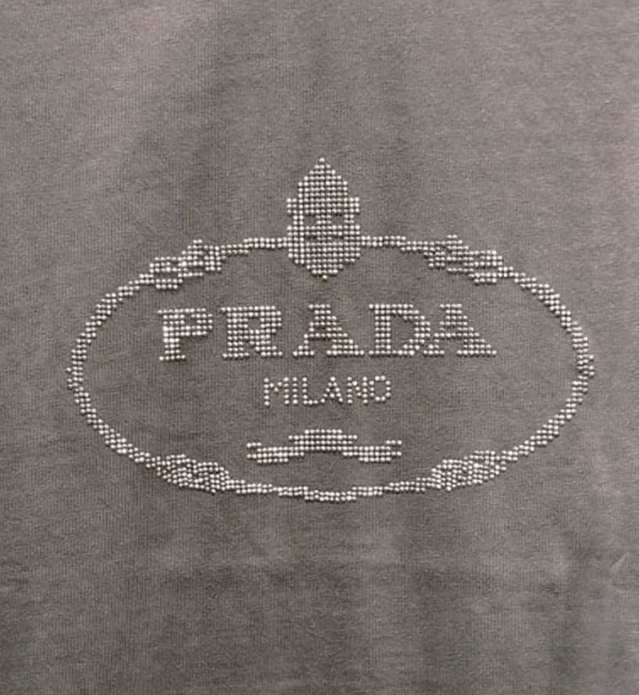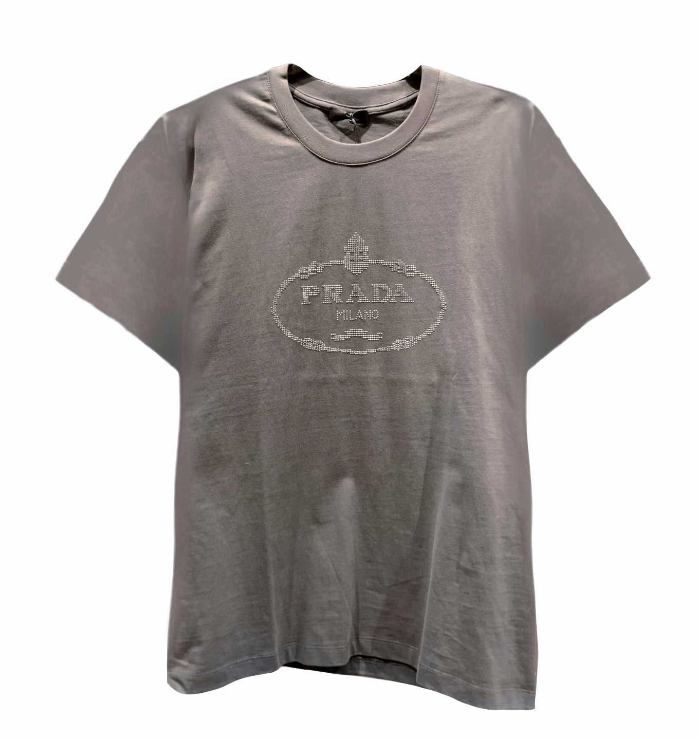 Camiseta Prada, 100% algodón, con estampado de Prada en piedras en la parte superior del pecho.