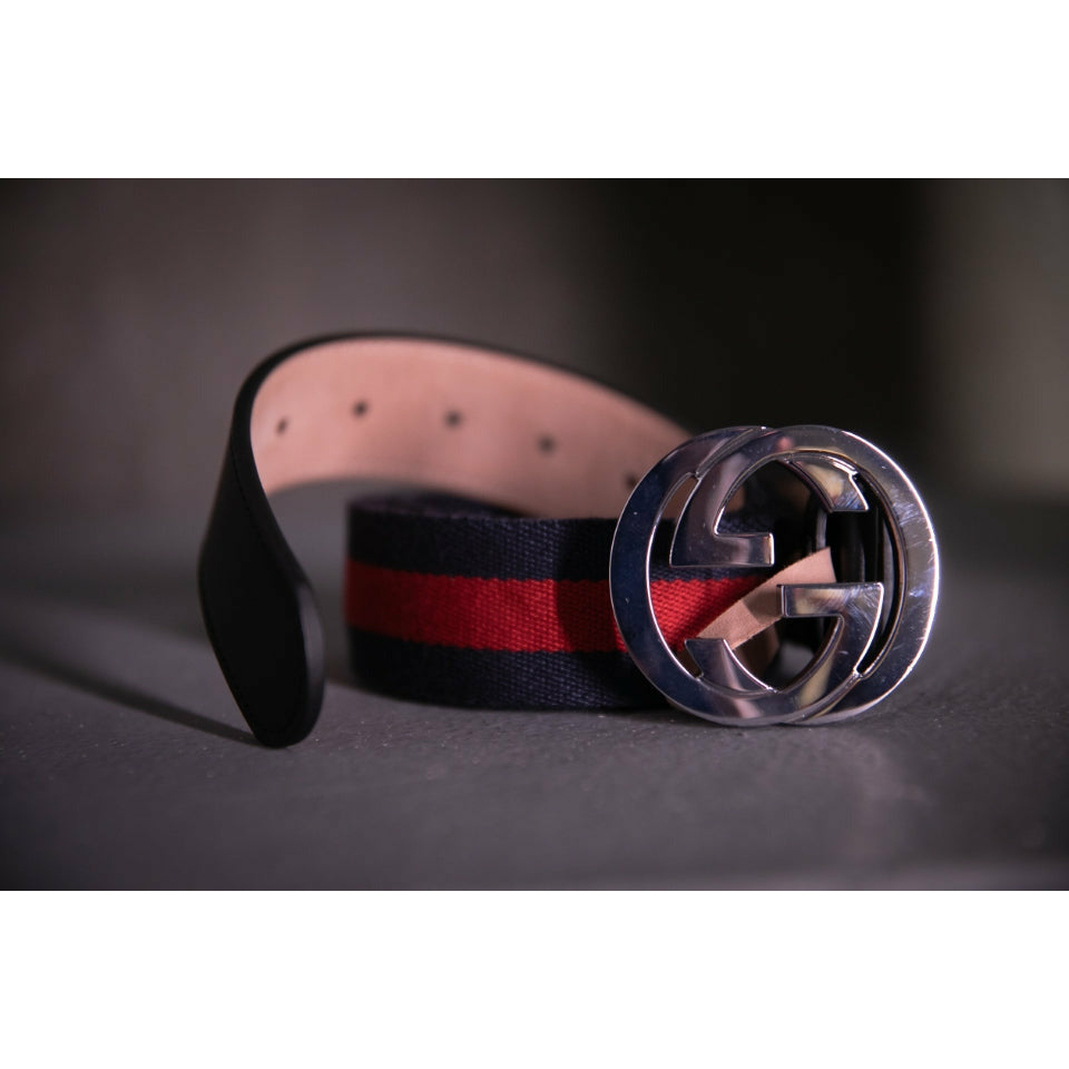 Cinturón gucci, elaborado en algodón y piel de becerro
