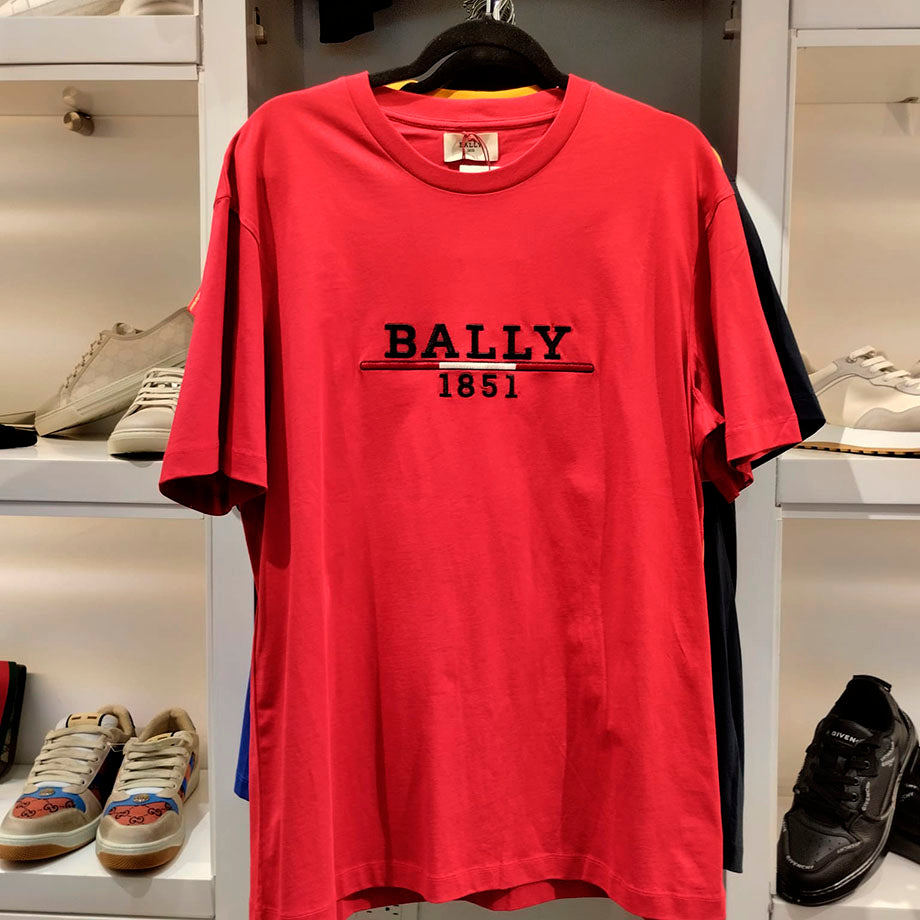 Camiseta bally, 100% algodón, con aplique y estampado en la parte frontal.