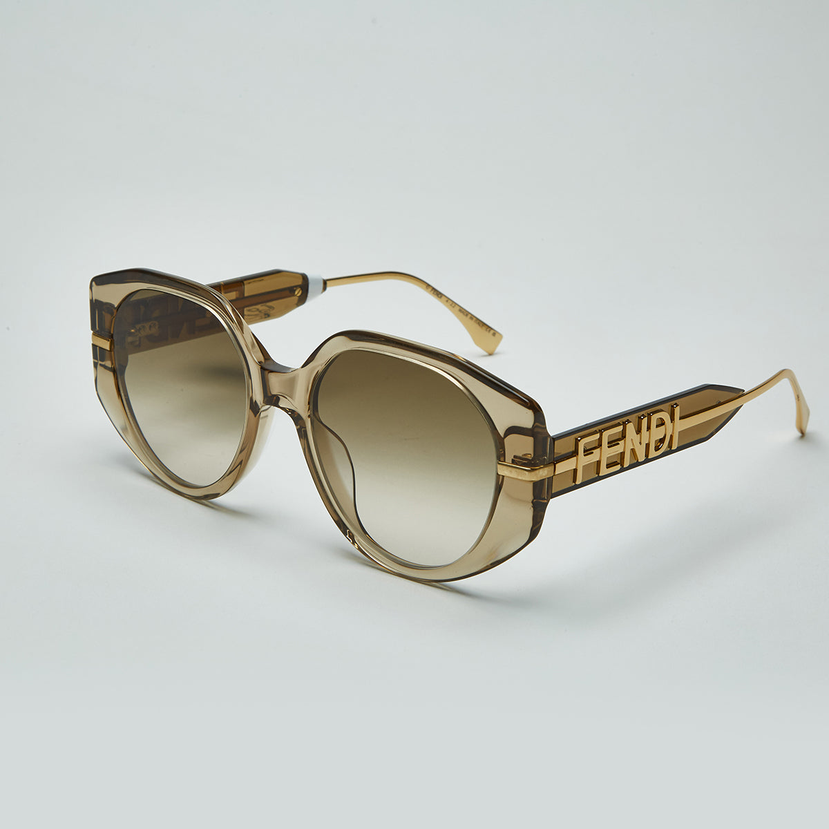 Marco en Acetato, varilla con accesorio Fendi. Con Accesorios de lujo en la varilla estas gafas demuestran poder y elegancia. Sus lentes ofrecen una protección 100% contra los rayos UVA y UVB, evitando daños en tus ojos. Con un estilo único y elegante, con detalles que las hacen inconfundibles.